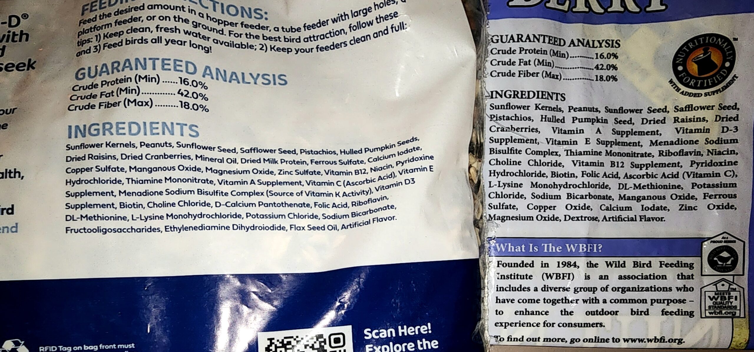 Author’s warning: It has come to my attention by a reader that since they revamped their packaging in 2025 they have also started using mineral oil on the seeds. Apparently, it helps extend the life of the seeds but it is at least not helpful, if not toxic, to birds.
